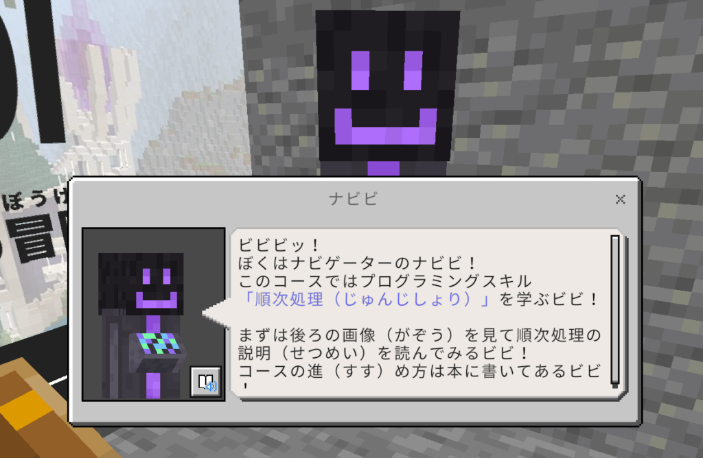 ※マイクラの操作が初めての方やプログラミングが初めての方は、まずは基本操作の書1~3に取り組んでください。