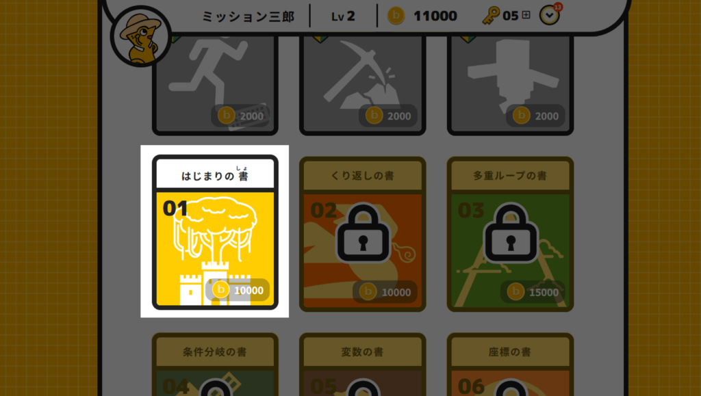 コース学習は1つクリアすると次が開放されます。順番にプログラミングスキルを習得していきましょう。