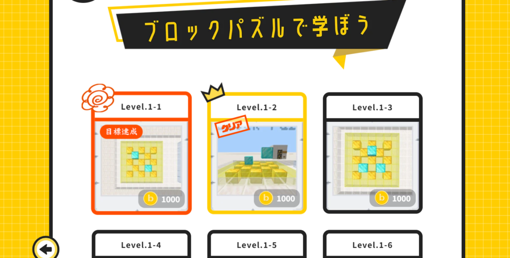 目標達成までできたものは「目標達成」マークがつきます。(Level.1-1)
