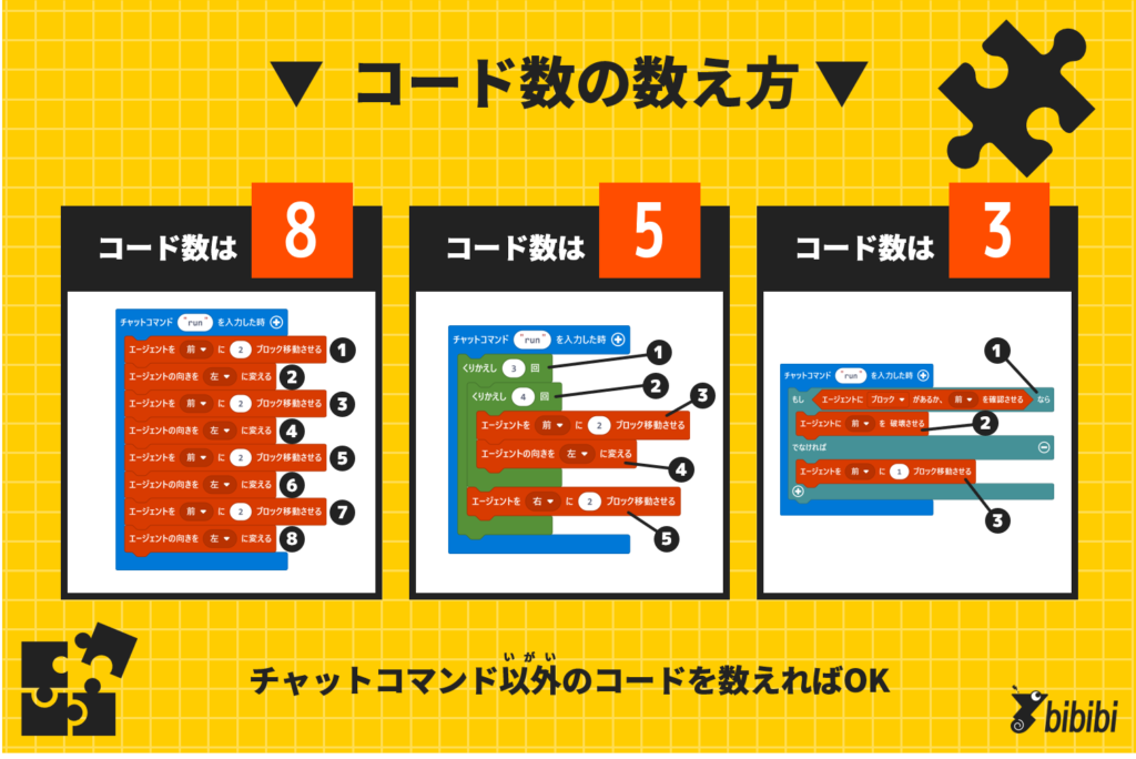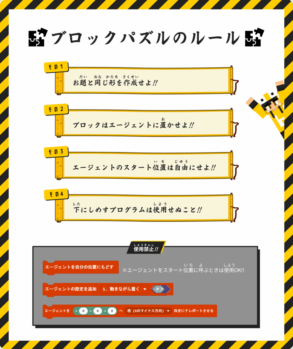 ③の「どんなプログラムでもOK」は次のブロックパズルのルールには従ってください。