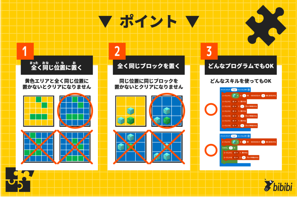 ③の「どんなプログラムでもOK」は次のブロックパズルのルールには従ってください。