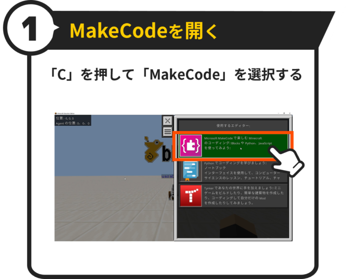 5.「コードビルダー」の項目が「Cキー」になっていたら上記画像の①に進む