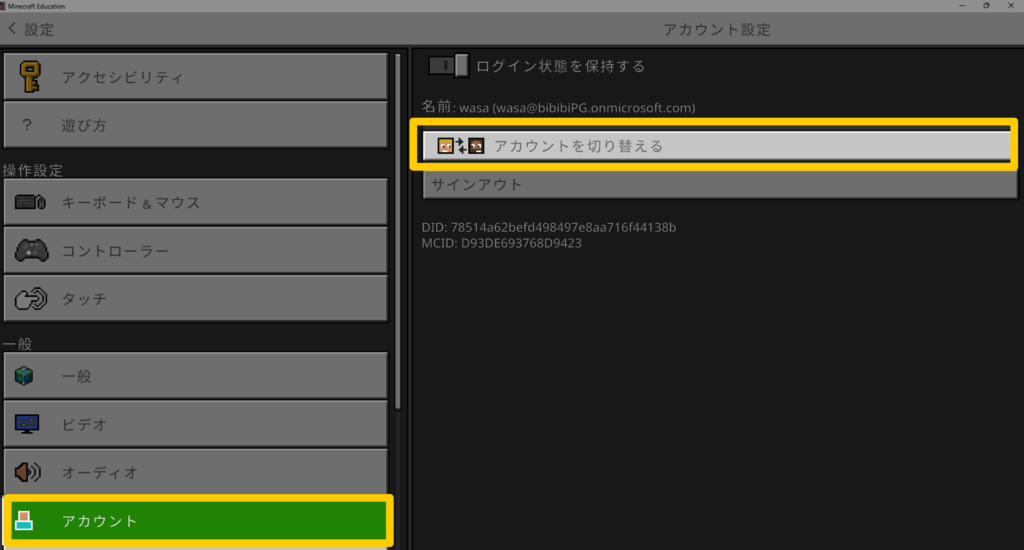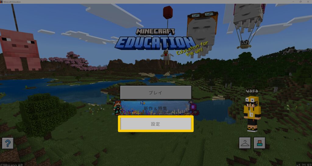 Minecraft Educationのアカウントを切り替えたい場合は、Minecraft Educationを起動して、「設定」を開きます。