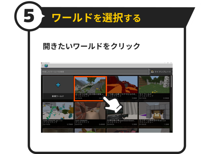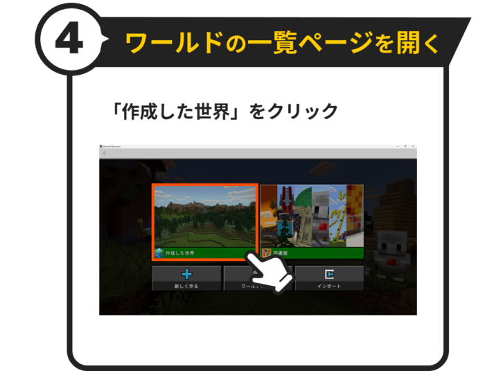 Minecraftのキャラクターを操作して移動できる空間を「ワールド」または「世界」と呼びます。