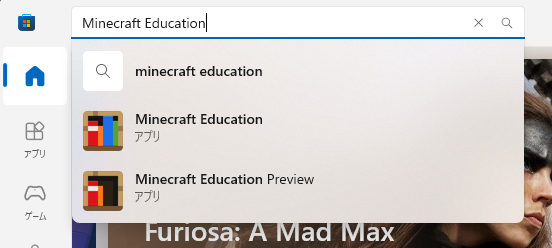 Microsoft Storeの上部検索バーで「Minecraft Education」と入力してください。